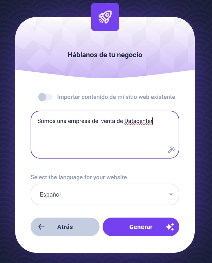 Añade detalles: Indica el nombre de tu marca, servicios principales, datos de contacto y, muy importante, el idioma en el que quieres que se redacten los textos.