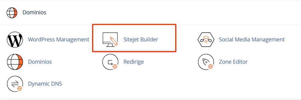 Entra a tu cPanel y busca el icono de Sitejet Builder en la sección de Dominios.